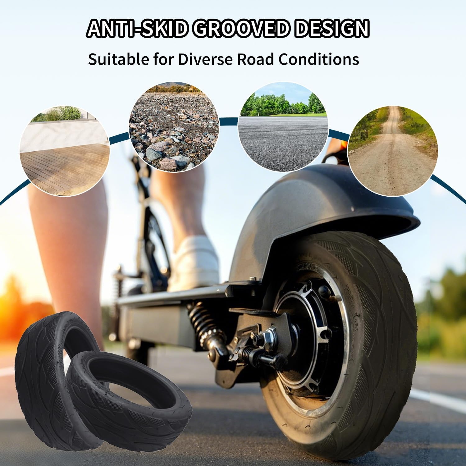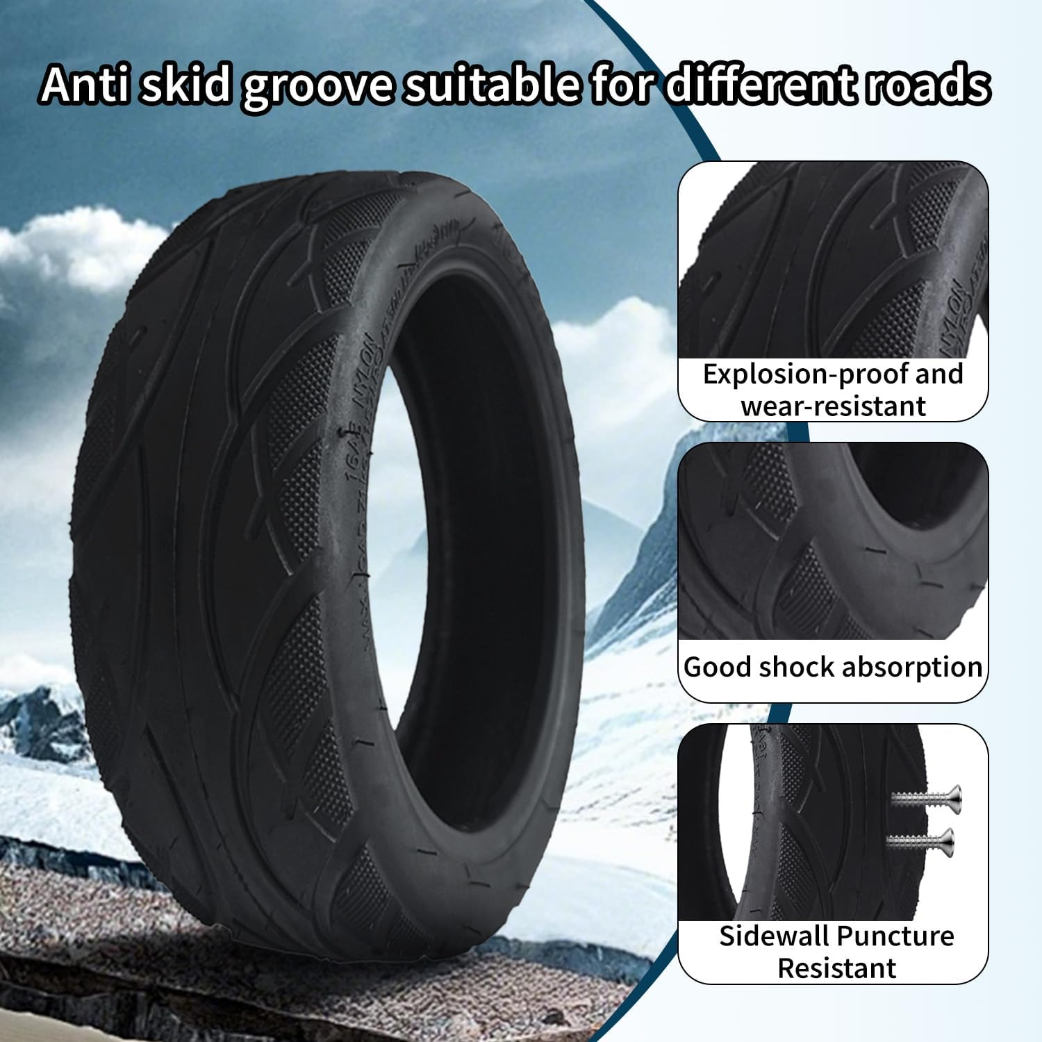 - 【TUBELESS TIRE FEATURES】: Our 10 inch tubeless tire are thicker than normal tires, providing better shock absorption. These tires are also resistant to aging, tearing, and abrasion. A good alternative to scooter accessories.