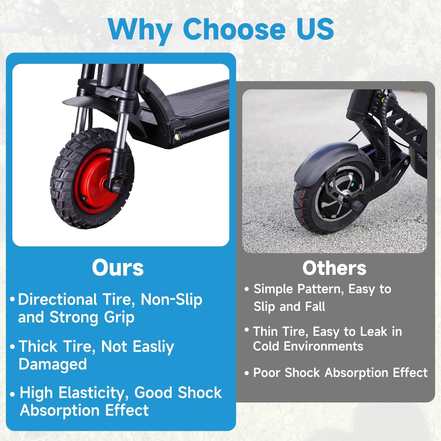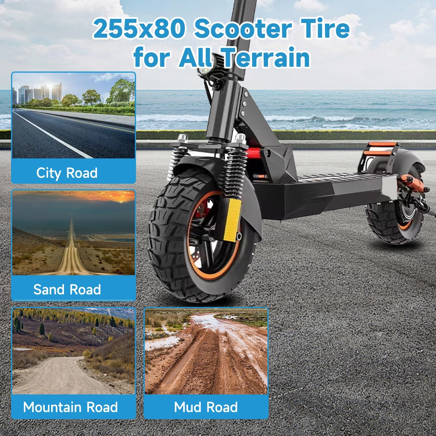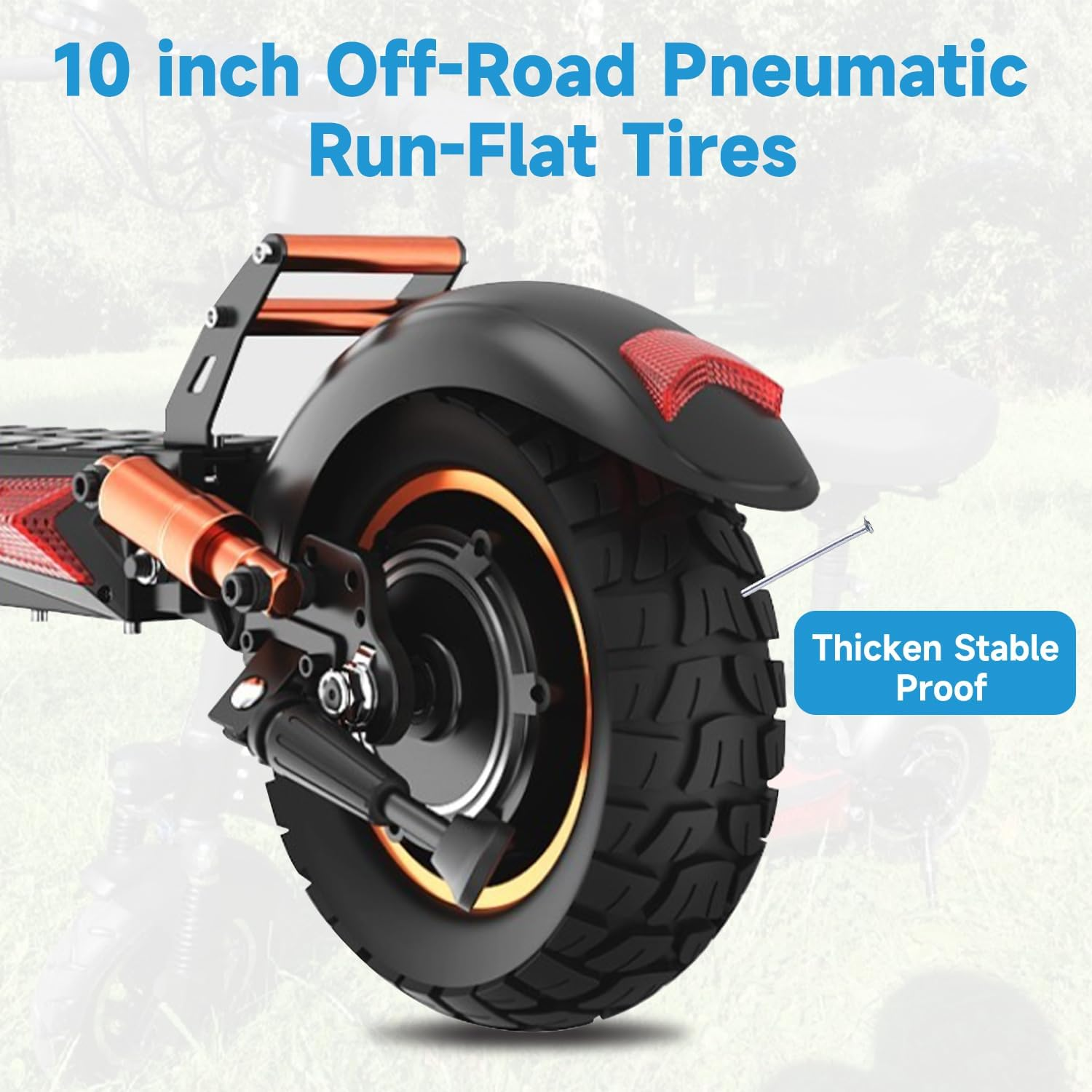 - All-Season Use: 10-inch large inflatable off-road tires designed for year-round performance, delivering ample traction across diverse terrains including grass, mountains, gravel, muddy asphalt, concrete surfaces, mildly uneven ground, and dry compacted dirt roads