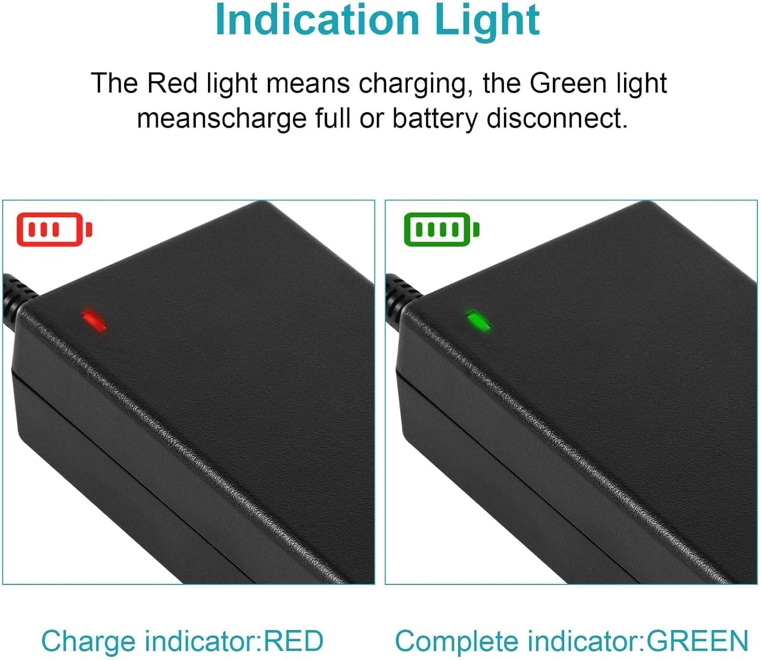 - Indication Light:green light when power indicate, red light when charging, green light when fully charged
