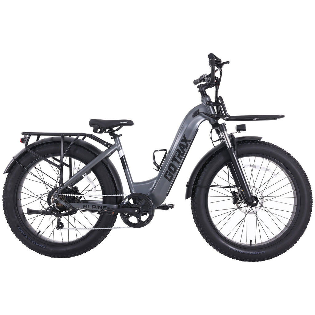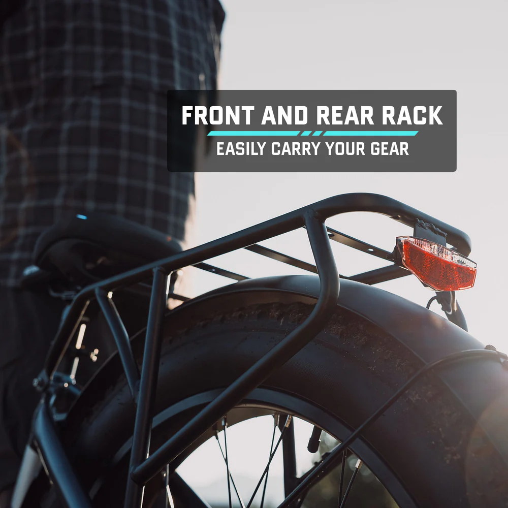 The Alpine Fat Tire eBike is the perfect all terrain ride for any rider, no matter where you choose to roam. With 4” wide fat tires, adjustable front suspension, a sizable battery capacity, and so much more, the Alpine offers fast, comfortable, and thrilling rides – all at an unbeatable price.