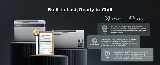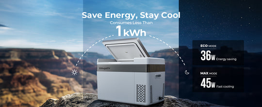 With the ECO mode, the BougeRV Portable Refrigerator consumes less than 36W of power, making it an energy-efficient solution for all your outdoor adventures. The MAX mode uses a smart cycle work that consumes less than 1kWh per day, ensuring minimal power usage while keeping your food and drinks cold.