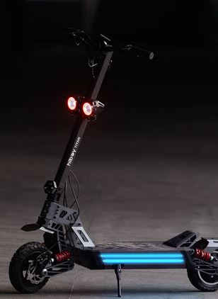 The Hiboy TITAN features a futuristic industrial design, combining rugged durability with elegant aesthetics. With its award-winning look, it stands out in both form and function, with exposed structural elements for added strength and reliability. The iconic headlight enhances visibility, ensuring safe and stylish rides.