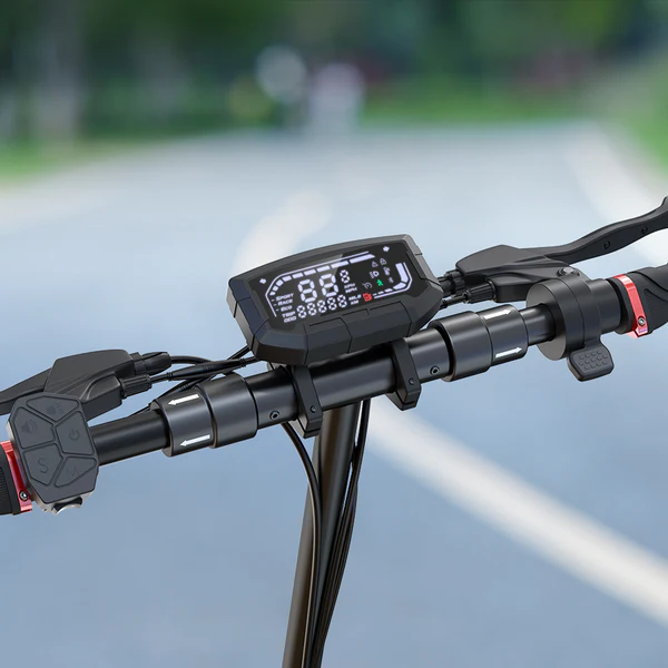 Information on LED Screen Current Speed, Battery level, Cruise control, Headlight, which mode is activated, maintenance, Temperature, turn signal indicator headlight on/off, Trip distance, etc