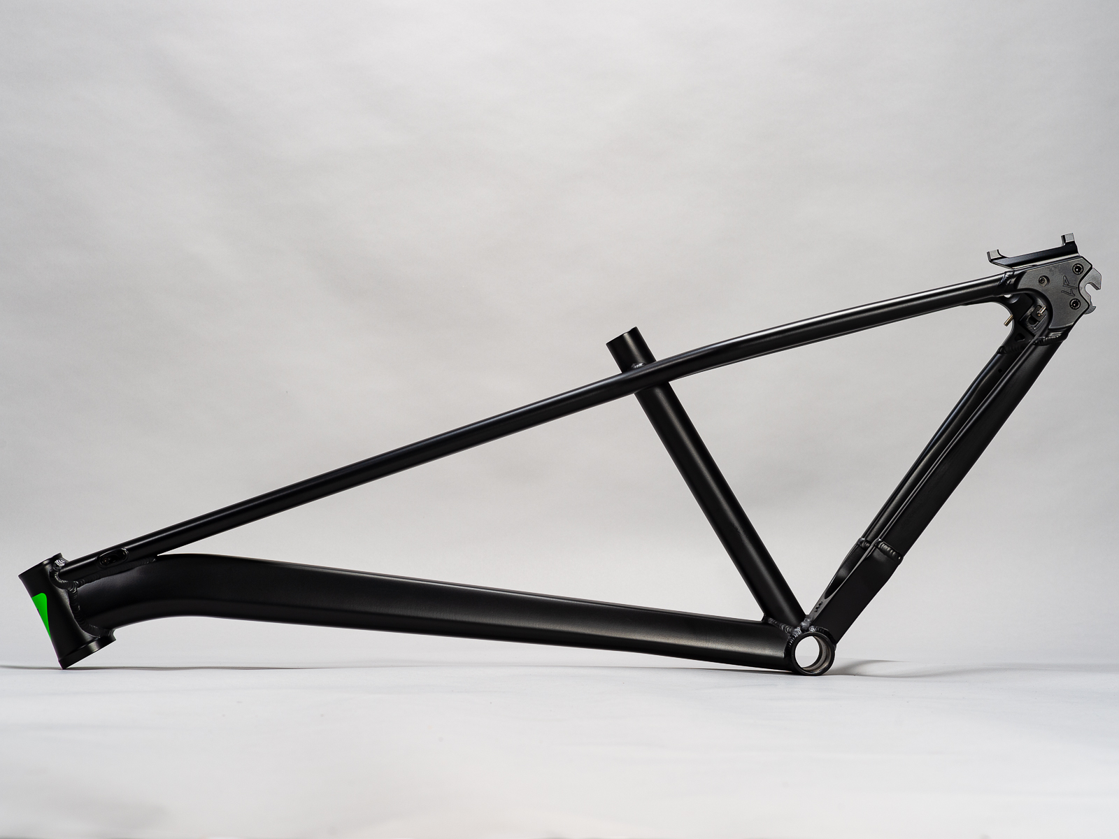 • We pulled out all the stops for this one. The frame can can run with 26” wheels through to 29” thanks to the sliding rear drop outs with built in chain tensioners. It can be run as single speed, geared or fixed. You can build it with rigid forks, or suspension, MTB bars or BMX/Cruiser. This really is the ultimate frame designed to suit all builds.