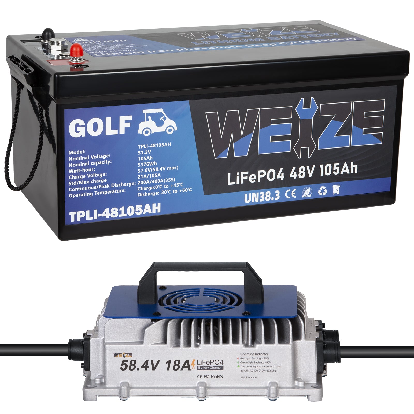 WEIZE 48V(51.2V) 105AH Golf Cart Battery w/ Charger