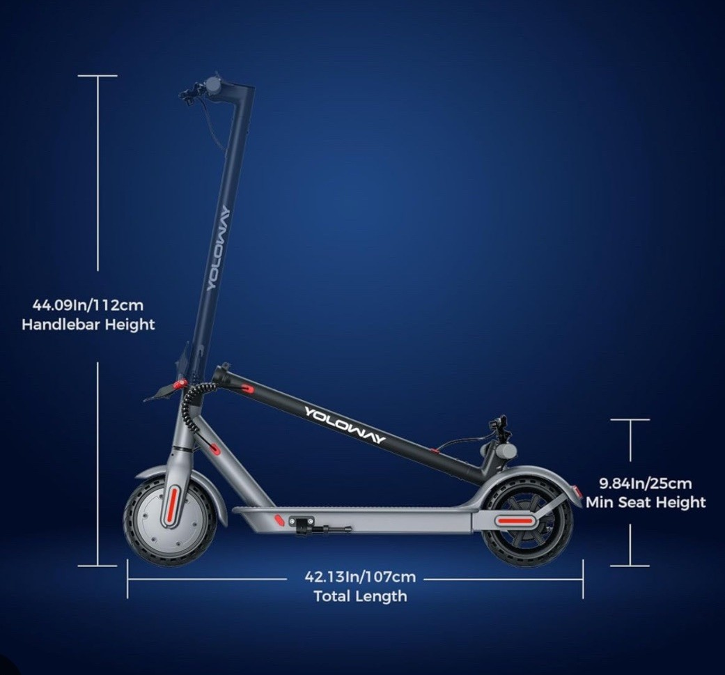 Yoloway YS1 Commuter Electric Scooter 250 Rated Power Motor, 15MPH Top Speed, Front Suspension, with 22KM Long Range Battery 36V, 7.5Ah, with Lighting And Battery Indicator, Electric Scooter, Urban Commuting, Lastmile Mobility, Foldable Scooter